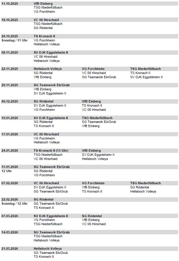 Spielplan Bezirksklasse West Frauen Saison 2025/26